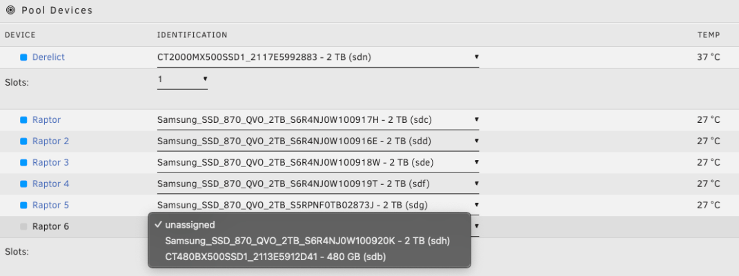 2. Configure el número de ranuras para coincidir con el número de discos que desea en sus vdev(s) de datos primarios.