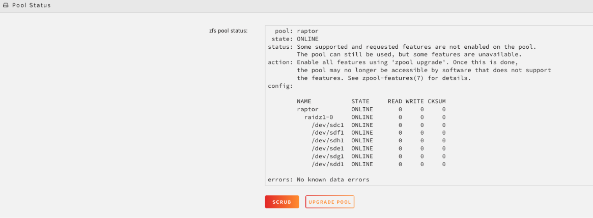 raptor) pour ouvrir sa configuration. - Sous État de la piscine, vérifiez l'état et cliquez sur Scrub.